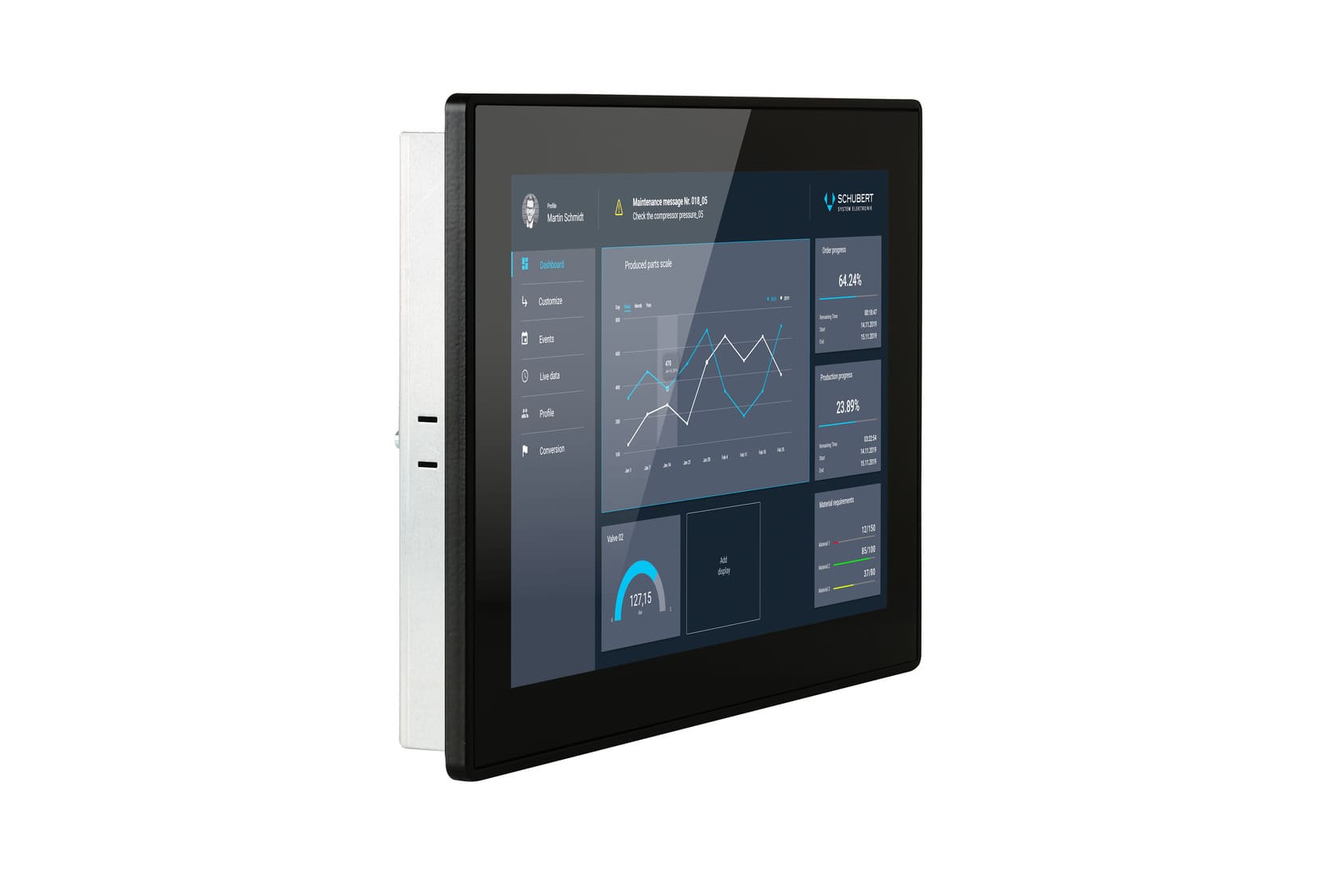 Optimiert für einfache Integration, maximale Zuverlässigkeit und ein überzeugendes Preis-Leistungs-Verhältnis, ausgestattet mit einem i.MX8M Plus Quad Prozessor und einem brillanten WXGA 10,1"-Display mit einer Auflösung von 1280x800 eignet sich das Panel ideal für anspruchsvolle HTML5-Visualisierungen.Die Power over Ethernet(PoE)-Versorgung reduziert den Verdrahtungsaufwand, der präzise, störungsfeste Multi-Touch, ein robuster Aluminiumrahmen, gehärtetes Frontglas und ein stabiles Stahlgehäuse sorgen für einen sicheren und zuverlässigen Betrieb.