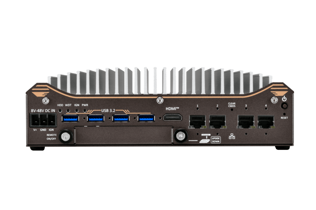 Designed for diverse edge applications—such as machine vision, AMRs, and smart automation—the Nuvo-11531 offers versatile sensor connections. It features four PoE+ 2.5GbE ports and four USB 3.2 Gen1 ports for industrial/ security cameras or LiDAR, along with multiple isolated DIO and dual COM ports for communication with external devices. Internally, it includes one M.2 E-key slot for Wi-Fi modules and two mPCIe slots for flexible I/O expansion, supporting 5G/4G modules, COM ports, CAN bus, or additional GbE ports. For data storage, it provides an internal Gen4x4 M.2 NVMe slot for the OS and an easy-swappable 2.5” SSD tray for data logging. The wide DC input and optional ignition power control are ideal for battery-powered applications, such as robotics and in-vehicle usage. Additionally, the Nuvo-11588 variant features a SlimSAS connector with PCIe Gen4x8 bandwidth for external NVMe, U.2 storage, industrial PCIe cameras, or GPUs.