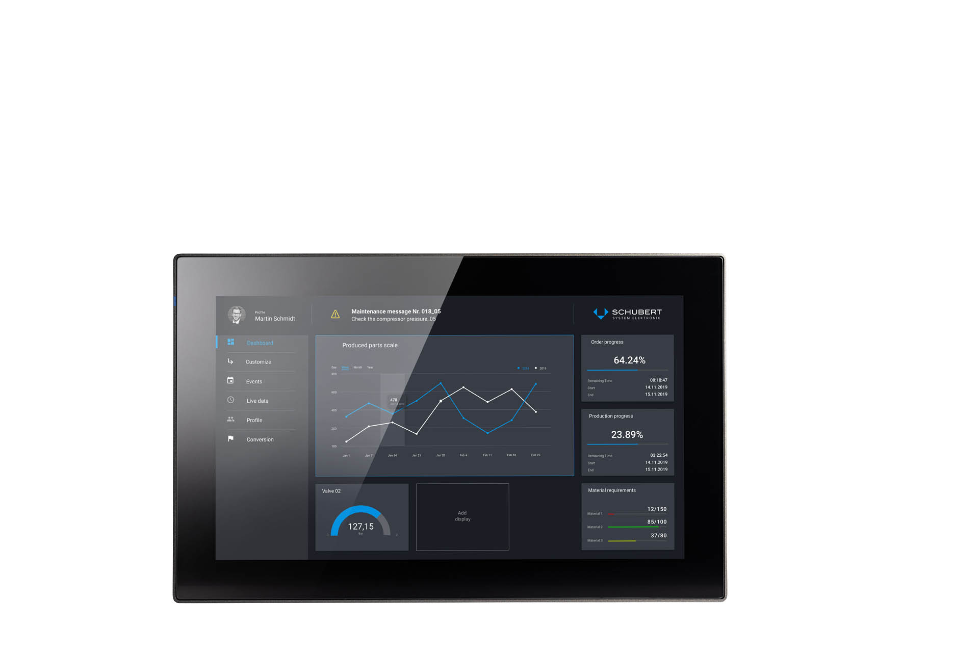 Der 18,5" Prime Panel Performance mit leistungsstarkem Intel® Core™ i3/i5/i7 CPU eignet sich für rechenintensive Aufgaben. Die Robustheit der Einbau-Systeme wird durch ein hochwertiges Aluminiumgehäuse mit Frontseitigem IP65 Schutz unterstrichen und lässt sich in einem 450 mm breiten Einbauausschnitt montieren. Die gehärteten und entspiegelten Glasfronten mit einem störfest-parametrierten Multi-Touch, bieten ein hochwertiges und zuverlässiges Bedienerlebnis.