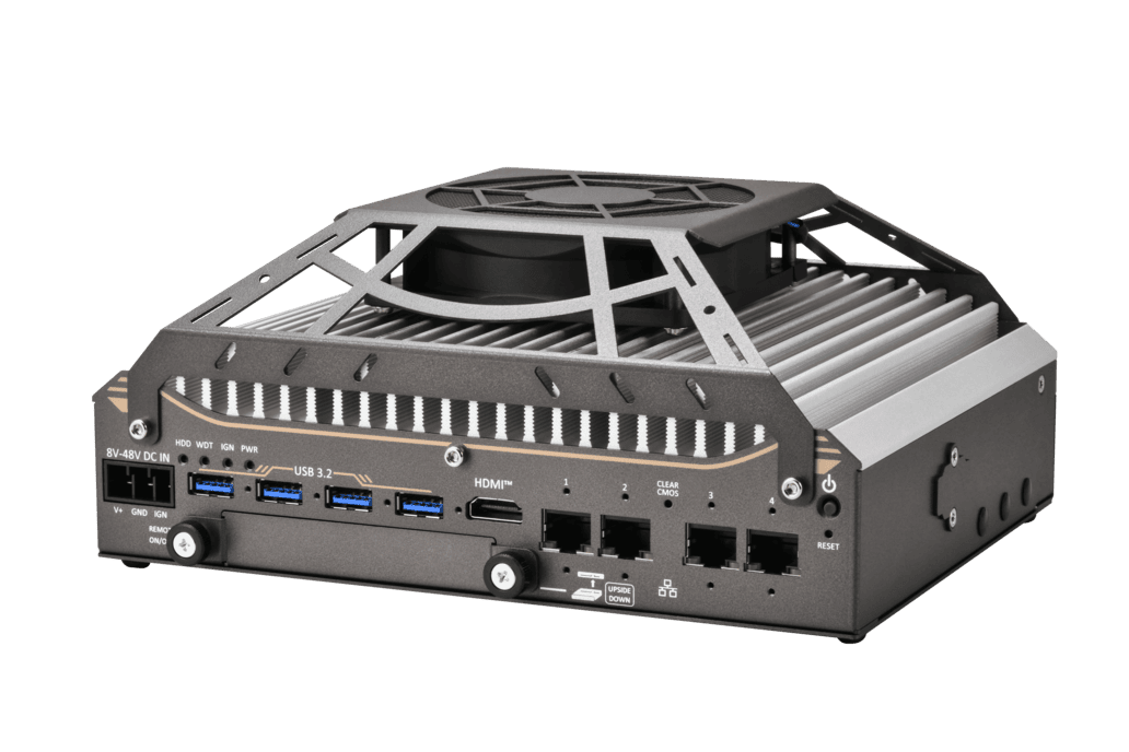 Designed for diverse edge applications—such as machine vision, AMRs, and smart automation—the Nuvo-11531 offers versatile sensor connections. It features four PoE+ 2.5GbE ports and four USB 3.2 Gen1 ports for industrial/ security cameras or LiDAR, along with multiple isolated DIO and dual COM ports for communication with external devices. Internally, it includes one M.2 E-key slot for Wi-Fi modules and two mPCIe slots for flexible I/O expansion, supporting 5G/4G modules, COM ports, CAN bus, or additional GbE ports. For data storage, it provides an internal Gen4x4 M.2 NVMe slot for the OS and an easy-swappable 2.5” SSD tray for data logging. The wide DC input and optional ignition power control are ideal for battery-powered applications, such as robotics and in-vehicle usage. Additionally, the Nuvo-11588 variant features a SlimSAS connector with PCIe Gen4x8 bandwidth for external NVMe, U.2 storage, industrial PCIe cameras, or GPUs.